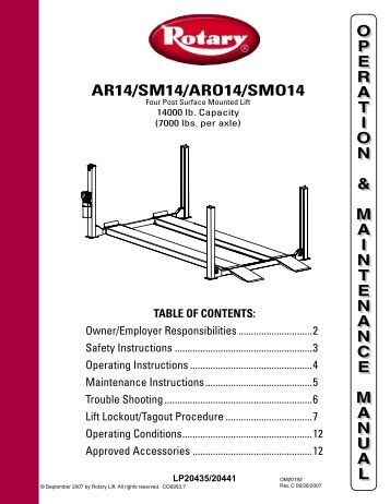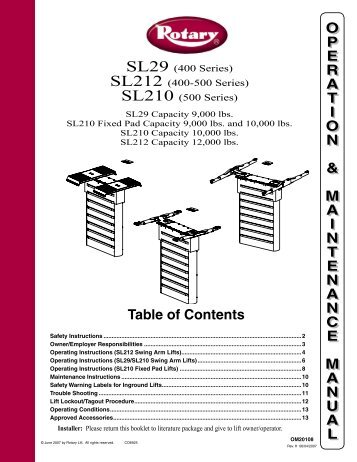 Installation, operation, & maintenance manual follow this manual carefully to ensure the machine will function correctly and provide many years of dependable service. 9,000 lb capacity 2 post lift ... Visit Document